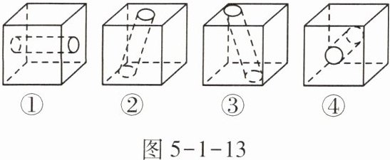 3.(知识点3)如图5-1-13,某数学小组在课外实践活动中,用电钻将四个质地均匀、质量相等的木质小正方体,分别从不同方向钻一个直径一样的直圆孔,再用天平分别称得下列小正方体的质量,下列说法中正确的是( )。