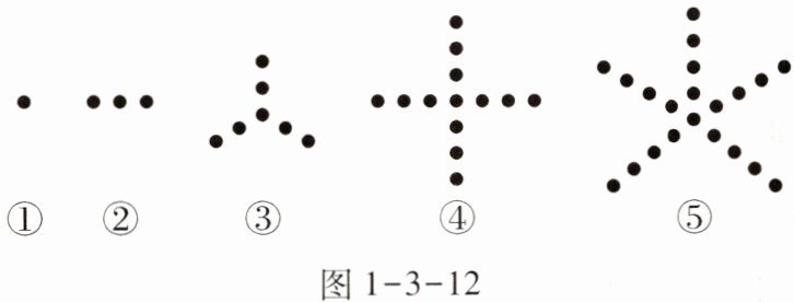 7.(2024·姑苏区期中·知识点1,2·能力点)观察图1-3-12中第①至第⑤个图中小黑点的摆放规律,并按照这样的规律继续摆放,记第ⓝ个图中小黑点的个数为y。