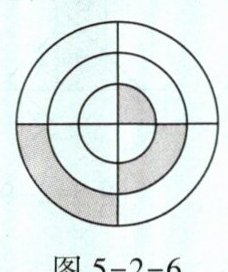 如图5-2-6,已知三个大小不相等的圆的圆心互相重合,且最大圆的半径为5 cm,求图中阴影部分的面积。