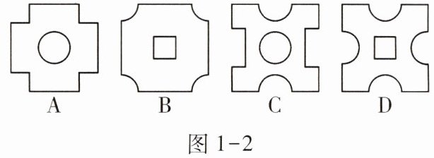 如图1-1所示,将一张正方形纸片对折后对折再对折,然后将阴影部分剪掉,把剩余部分展开后的平面图形是( )。