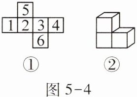 一个不透明小立方块的六个面上分别标有数字1,2,3,4,5,6,其展开图如图5-4①所示。在一张不透明的桌子上,按图5-4②方式将三个这样的小立方块搭成一个几何体,则该几何体能看得到的面上数字之和最小是( )。