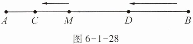 8. (知识点6·能力点1)如图6-1-28,M是线段AB上一定点,C,D两点分别从M,B出发,分别以1 cm/s,3 cm/s的速度沿直线BA向左运动,运动方向如箭头所示(C在线段AM上,D在线段BM上)。