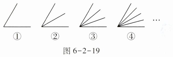5.(知识点1·能力点1)如图6-2-19,图①中有1个角,图②中有3个不同角,图③中有6个不同角,……,按此规律下去图⑥中不同角的个数为( )。