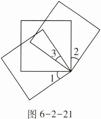 7.(知识点3,4·能力点2)如图6-2-21,将三个边长相同的正方形的一个顶点重合放置,已知$\angle 1= 34^{\circ }$,$\angle 2= 32^{\circ }$,则$\angle 3= $ $^{\circ }$。
