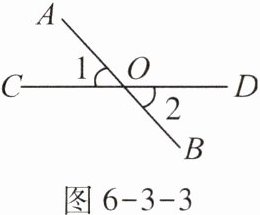 如图6-3-3,直线AB和CD相交于点O,若∠1+∠2= 90°,则∠BOC的度数为( )。