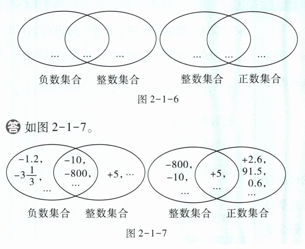 如图2-1-6,将$-1.2,-10,+2.6,-800,-3\frac{1}{3},91.5,0.6,+5$填入相应集合的圈内。