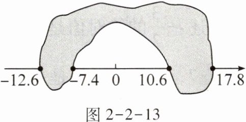 7.(2023·安阳期中·能力点3)小红在做作业时,不小心将墨水洒在一条数轴上,如图2-2-13。根据图中标出的数值,判断墨迹盖住的整数共有______个。