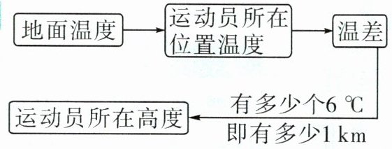 根据高度与温度变化的关系,求得登山运动员所在位置的高度。将实际问题转化为数学问题时,往往需要利用建模思想,解答此类问题时,关键是发现温度与高度之间的关系,既可以根据高度求出温度,也可以根据温度求出高度。