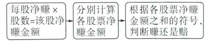解 每股净赚×股数= 该股净赚金额分别计算各股票净赚金额根据各股票净赚金额之和的符号,判断赚还是赔
