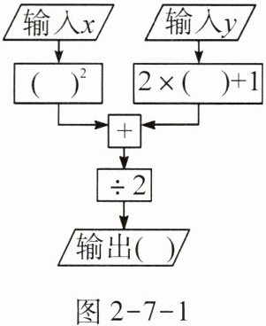 2.(知识点1)如图2-7-1,若输入的x与y满足$|x+1|+(y-\frac {1}{2})^{2}= 0$,则输出的结果为( )。