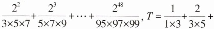 10.(知识点1,2·能力点1)设$S= \frac {2}{1×3×5}+\frac {2^{2}}{3×5×7}+\frac {2^{3}}{5×7×9}+... +\frac {2^{48}}{95×97×99},T= \frac {1}{1×3}+\frac {2}{3×5}+\frac {2^{2}}{5×7}+... +\frac {2^{47}}{95×97}$,则$12S-3T= $( )。
