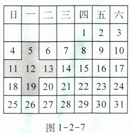 如图1-2-7是2022年12月份的月历,现用如图1-2-7的十字框任意框出5个数。