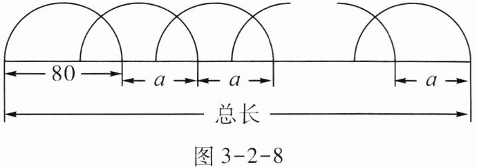7.(知识点2)如图3-2-8,某花园护栏是用直径为80 cm的半圆形条钢组制而成,且每增加一个半圆形条钢,护栏长度就增加a cm(相邻两个条钢之间都有交叉,a为正整数),设半圆形条钢的总个数为x(x为正整数)。