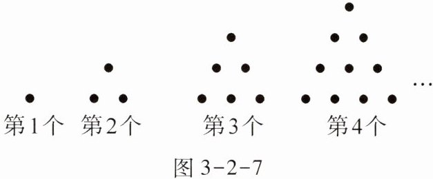 6.(2024·湖南湘西州模拟·知识点2·能力点1)古希腊数学家把1,3,6,10,15,21,…这样的数叫做三角形数,因为它的规律可以用图3-2-7表示。根据图形,若把第1个图形表示的三角形数记为$a_{1}= 1$,第2个图形表示的三角形数记为$a_{2}= 3$,……,则第n个图形表示的三角形数记为$a_{n}= $______。(用含n的式子表示)