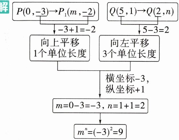 【解析】:本题可根据点$P$、$Q$平移前后的坐标变化,确定平移的规律,进而求出$m$、$n$的值,最后计算$m^n$。