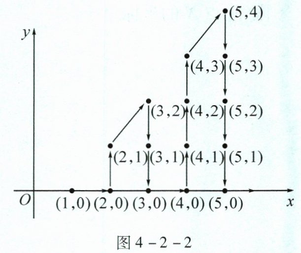 例如,第一列有一个点$(1,0)$,第二列有两个点$(2,0)$,$(2,1)$,第三列有三个点$(3,0)$,$(3,1)$,$(3,2)$,以此类推。