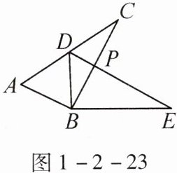 6. (能力点2)如图1-2-23,△ABC≌△DBE,点D在边AC上,BC与DE交于点P,已知∠ABE= 162°,∠DBC= 30°,AD= DC= 2.5,BC= 4。