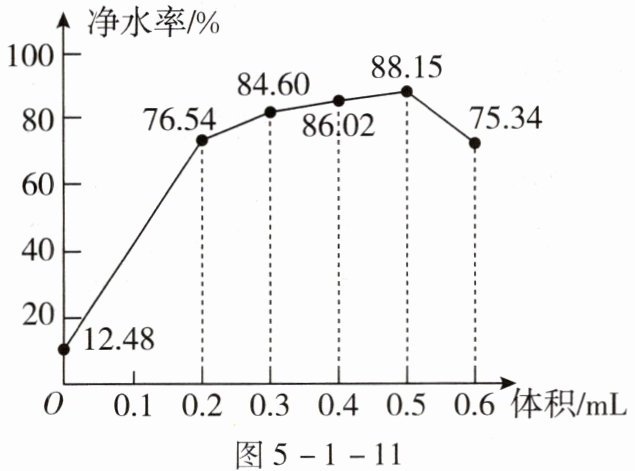化学实验小组查阅资料了解到:某种絮凝剂溶于水后能够吸附水中悬浮物并发生沉降,从而达到净水的目的。实验得出加入絮凝剂的体积与净水率之间的关系如图5-1-11所示,下列说法正确的是(
