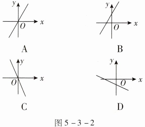 题目考查正比例函数的图像性质,正比例函数$y=kx$($k$是常数,$k\neq0$),当$k\gt0$时,图像经过第一、三象限;当$k\lt0$时,图像经过第二、四象限。