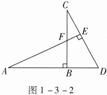 如图1-3-2,CB⊥AD,AE⊥DC,垂足分别为B,E,AE,BC相交于点F,且AB= BC。求证:△ABF≌△CBD。
