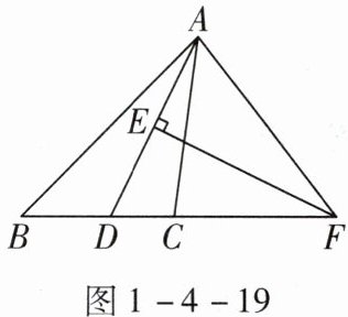 如图1-4-19,在△ABC中,AD为∠BAC的平分线,FE垂直平分AD,交AD于点E,交BC的延长线于点F,求证:∠B= ∠CAF。