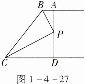 5.(2025·盐城月考·知识点2·能力点2)如图1-4-27,$AB// CD$,PB和PC分别平分$∠ABC和∠DCB$,AD过点P,且与AB垂直,若$AD= 8cm,BC= 10cm$,则四边形ABCD的面积是______$cm^{2}$。