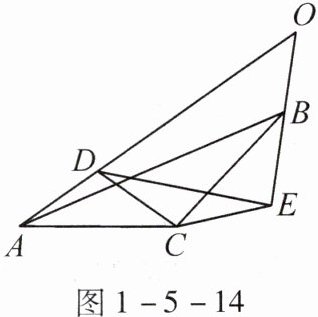 如图1-5-14,在△ABC和△DCE中,CA= CB,CD= CE,∠CAB= ∠CED= α,延长AD,EB交于点O。