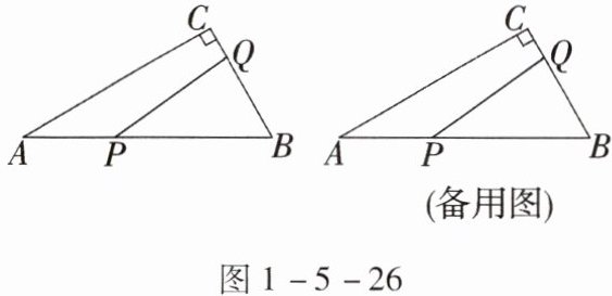 7.(能力点2,4,5)如图1-5-26,在Rt△ABC中,∠C= 90°,∠A= 30°,BC= 12cm。动点P从点A出发,沿AB向点B运动,动点Q从点B出发,沿BC向点C运动,如果动点P以2cm/s,Q以1cm/s的速度同时出发,设运动时间为ts,解答下列问题。