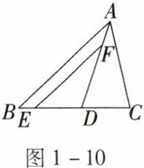 如图1-10,在△ABC中,AD平分∠BAC,E,F分别在BD,AD上,且DE= CD,EF= AC,求证:EF//AB。