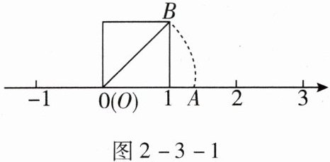 如图2-3-1是王老师讲解“实数”时所画的图,即“以数轴的单位长度1”为边长作一个正方形,然后以O为圆心,以正方形的对角线的长为半径画弧,交数轴于点A,作这样的图是用来说明(