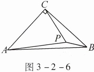 如图3-2-6,在$\triangle ABC$中,$\angle ACB= 90^{\circ}$,AC= BC,P是$\triangle ABC$内的一点,且PB= 1,PC= 2,PA= 3,求$\angle BPC$的度数。