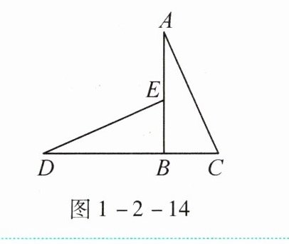 如图1-2-14,D,B,C三点在同一条直线上,点E在AB上,且△ABC≌△DBE,∠D与∠A是对应角,试判断DE与AC的位置关系,并说明理由。