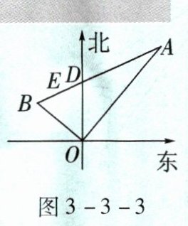 某天,暴雨突然来袭,两艘搜救艇接到消息,在海面上有遇险船只从A,B两地发出求救信号。于是,第一艘搜救艇以20n mile/h的速度离开港口O沿北偏东40°的方向向A地出发,同时,第二艘搜救艇也从港口O出发,以15n mile/h的速度向B地出发,2h后,他们同时到达各自的目标位置,如图3-3-3所示。此时,他们相距50n mile。