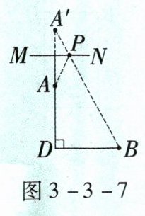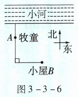 如图3-3-6,一个牧童在小河南4km的A处牧马,而他正位于他的小屋B的西8km,北7km处,他想把他的马牵到小河边去饮水,然后回家。他要完成这件事情所走的最短路程是多少?