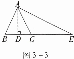 如图3-2,△ABC为等腰三角形,AB= AC= 2。E为BC延长线上一点,且AE= 4。若BC:CE= 2:3,判断△ABE的形状,并说明理由。