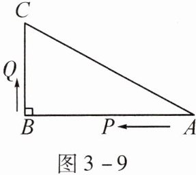 如图3-9,已知在△ABC中,∠B= 90°,AB= 16cm,BC= 12cm,P,Q是△ABC边上的两个动点,其中点P从点A开始沿A→B方向运动,且速度为每秒1cm,点Q从点B开始沿B→C→A方向运动,且速度为每秒2cm,它们同时出发,设出发的时间为t s。