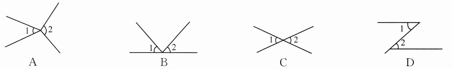 1(2025南通崇川月考)下面四个图形中,∠1与∠2互为对顶角的是(