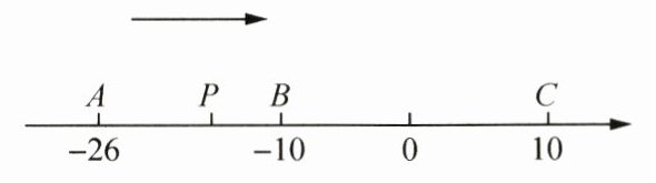 26. (10分)已知数轴上有A,B,C三点,分别表示有理数-26,-10,10,动点P从点A出发,以每秒1个单位长度的速度向终点C移动,设点P的移动时间为t s.