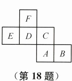 18. 如图是一个正方体的展开图,它的各个面分别用字母A,B,C,D,E,F表示.已知A= mx+1,B= 3x-2,C= 5,D= x-1,E= 2x-1,F= x-2,如果正面字母A代表的式子与对面字母代表的式子的值相等,且x为整数,则负整数m的值是______.