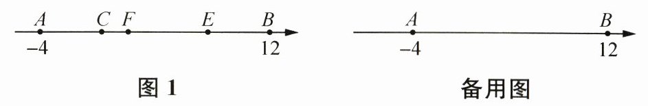 25. (14分)数轴上A,B两点对应的数分别是$ -4 $,12,线段CE在数轴上运动,点C在点E的左边,且$ CE = 8 $,F是AE的中点.