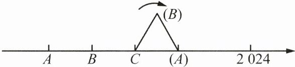 10. (2025 苏州工业园区期末)三边都相等的三角形叫作等边三角形. 如图,将数轴从点 A 开始向右折出一个等边三角形 ABC,点 A,B,C 表示的数分别为$2x-7,x-3,4-x$. 现将等边三角形 ABC 向右滚动,则与表示数 2 024 的点重合的是( )