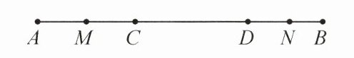 15. 如图,已知 C,D 为线段 AB 上的两点,M,N 分别为 AC 和 BD 的中点,$AB= 15,CD= 7$,则线段 MN 的长为______.