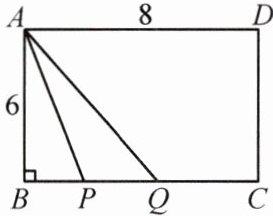 2 如图,在长方形ABCD中,AB= CD= 6 cm,BC= AD= 8 cm.动点P从点B出发沿B→C向点C运动,速度是2 cm/s;动点Q从点C出发沿C→B向点B运动,速度是4 cm/s,P,Q两点同时出发,当点Q到达点B时,两点同时停止,设运动的时间是t s.