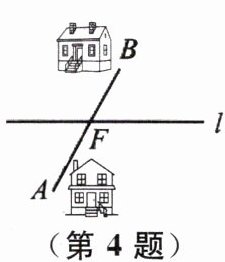 4(2025 淮安期末)如图,村庄 A 和村庄 B 位于公路 l 两侧,为使公路上的公交站台到 A,B 两村庄的距离之和最小,建站位置选在了 AB 与直线 l 的交点 F 处,这么做的依据是______