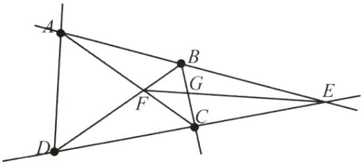 ①画直线 AB,CD 交于点 E;②画线段 AC,BD 交于点 F;③连接 EF 交 BC 于点 G;④连接 AD,并将其反向延长;⑤作射线 BC.