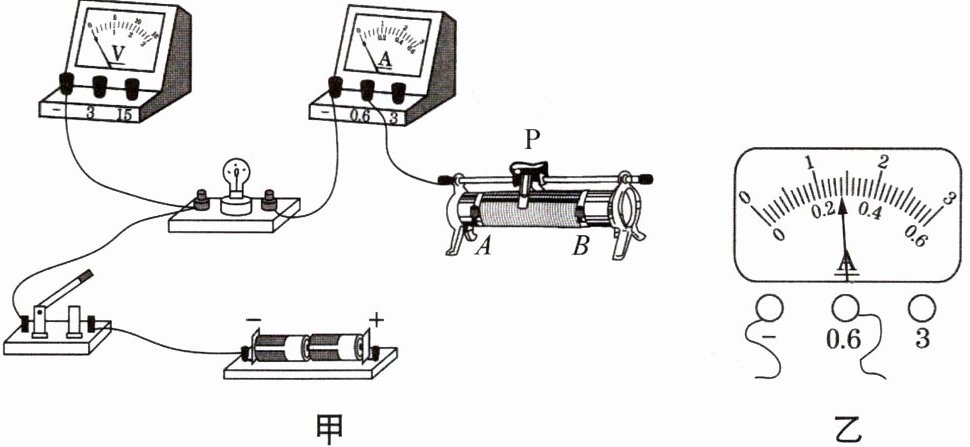 (3)问题解决后,闭合开关,移动滑动变阻器的滑片P,观察小灯泡的亮度,多次测量并记录数据(如表所示).当电压表的示数为2.5 V时,小灯泡正常发光,此时电流表示数如图乙所示为______A,计算此时小灯泡的阻值为______Ω(结果精确到0.1 Ω).