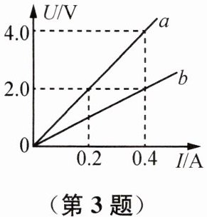 3 张阳在探究电阻上的电流跟两端电压的关系时,用记录的实验数据作出了如图所示的$U-I$图像,则$a$的电阻值为