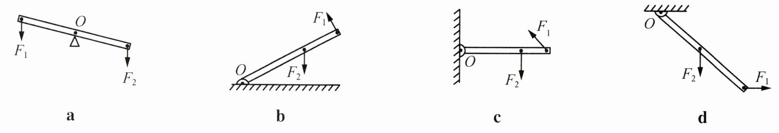 例4 在下列图中画出力$F_{1}$、$F_{2}的力臂l_{1}$、$l_{2}$.