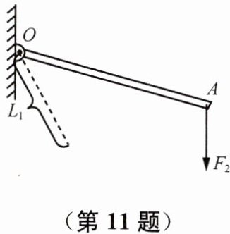 11 易错题 如图所示,杠杆OA在力$F_{1}$、$F_{2}$的作用下处于静止状态,在图中画出力$F_{2}的力臂L_{2}和力臂L_{1}对应的力F_{1}$.
