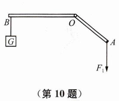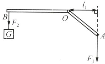 10 (2023南通)如图所示,轻质杠杆AOB保持静止,O为支点,请作出动力$F_{1}的力臂l_{1}和阻力F_{2}$.